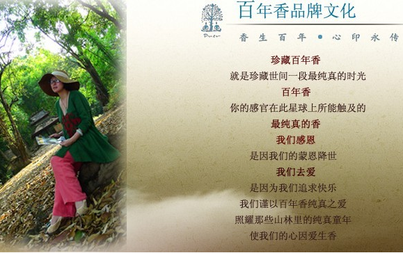 百年香----东方茶仪创始于2007年7月7日,以中国传统文化为根,以千年古茶树为源,倡导“心灵茶汤”七日茶中“自在、喜悦、慈悲”的新普洱注意生活禅,传播东方茶仪文化并创办东方茶仪女子学堂。传承中国传统文化中,煮茶、插花、抚琴、焚香、书画之精粹,集礼节、妆容、华服、配饰、仪态为一身,由“东方茶-华夏仪”修心养身的东方人形象,带给人的不仅是一个远离浮躁显示的心灵静谧空间,更是一种高尚茶香生活方式。